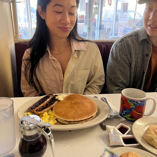 Part of my San Francisco Diner Date experience is asking my diner dates for their hot takes (or, if they take ‘em that way - cold takes) on diners. And so, before I dig into the vegetarian sausage, eggs, flattened hash brown, and biscuits in front of me, I pull out my little blue notebook and pen to jot down some answers.